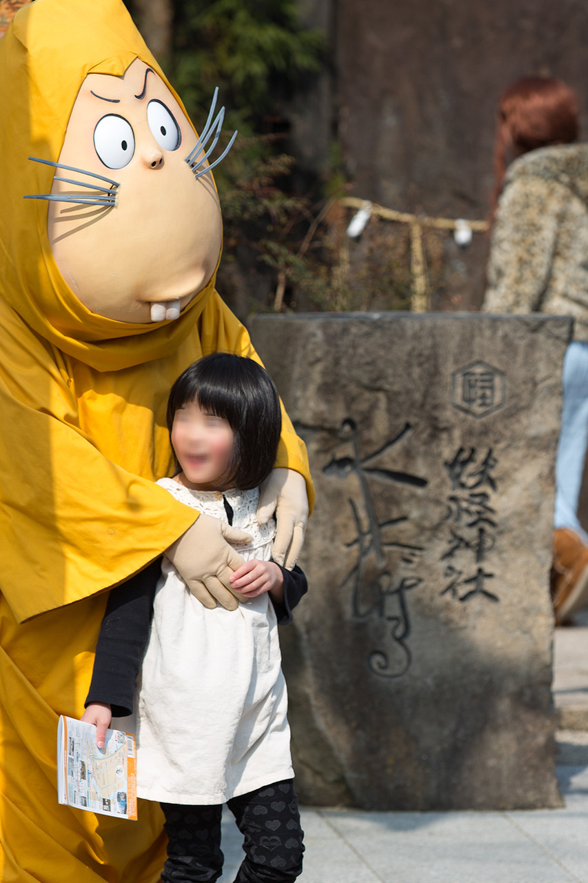 するとご両親が「大丈夫、怖くないよ」というと、ネズミ男は振り向いておどけて、いっぱい女の子を楽しませました。女の子は泣きやんで、最後は仲良く記念撮影♪