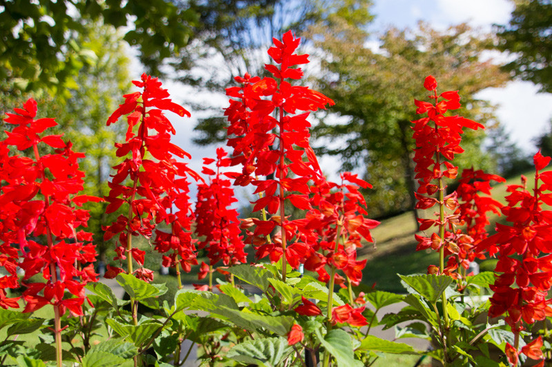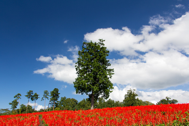 丘一面に植えられたサルビアは青空に映えてとてもきれいです。
