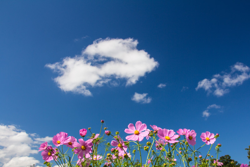 園内あちこちに色とりどりのコスモスが咲いてます。