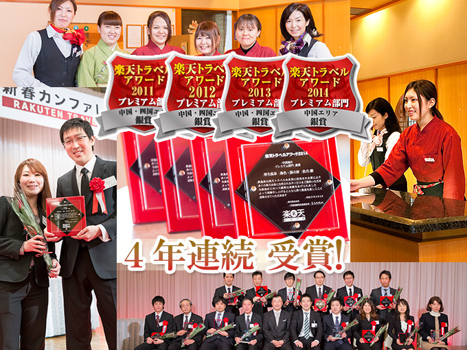 楽天トラベルアワードは全国の29,000軒を超える宿泊施設の中から、昨年1年間に顕著な実績を収められた施設を表彰しております。中国エリアの施設の中から、高級旅館ホテルのプレミアム部門で銀賞に選ばれました。