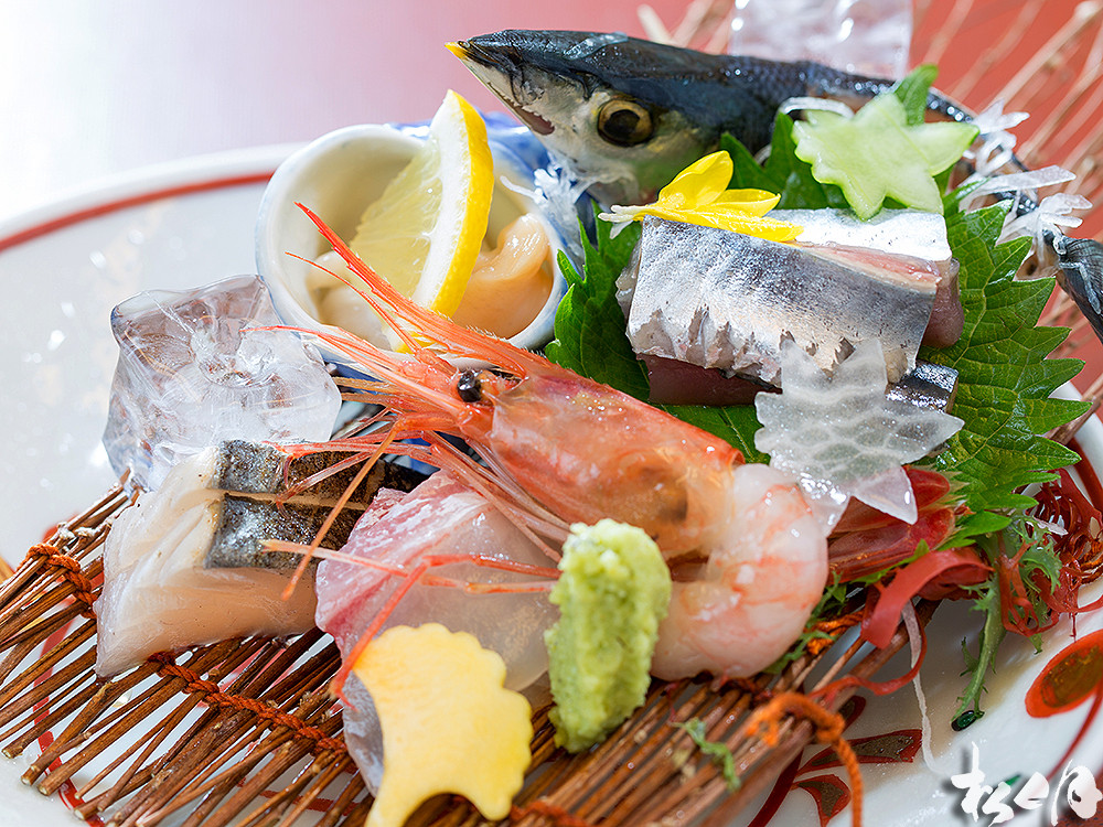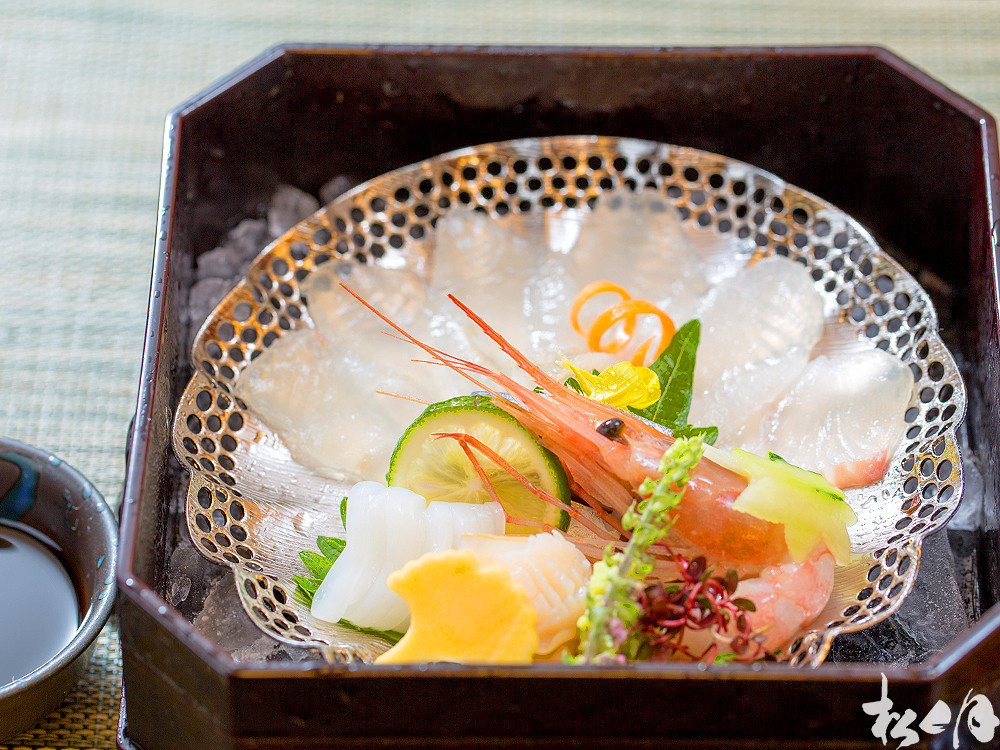 御造り県魚平目の薄造り他季節旬魚盛合せ