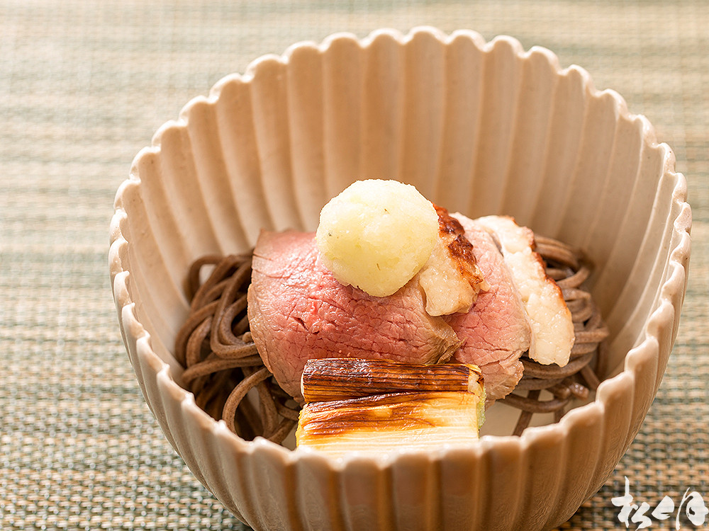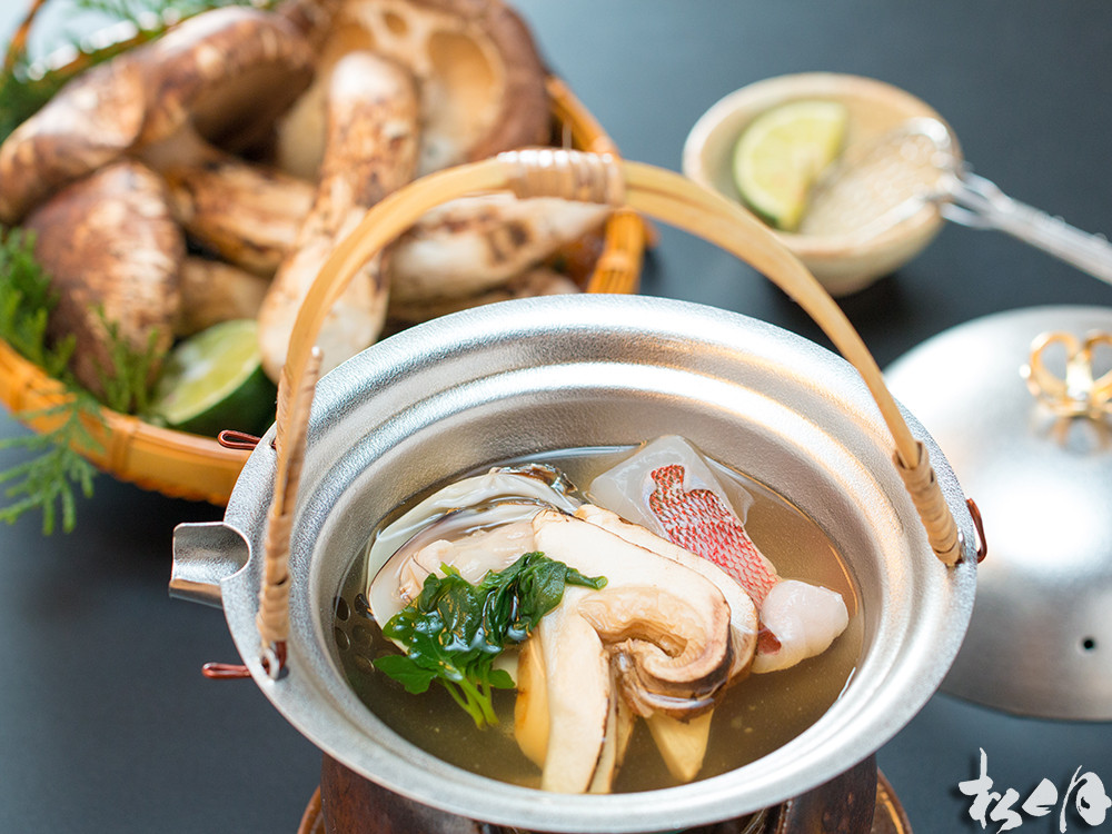 焼物:のど黒松茸包み焼鳥取牛ロース網焼